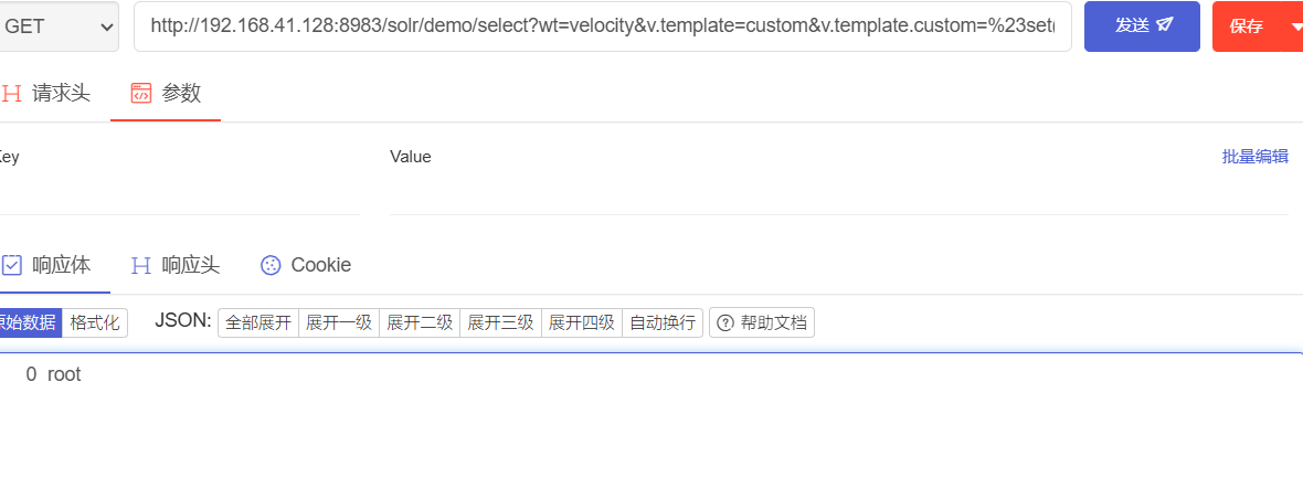 Apache Solr默认集成VelocityResponseWriter插件,在该插件的初始化参数中的params.resource.loader.enabled这个选项是用来控制是否允许参数资源加载器在Solr请求参数中指定模板,默认设置是false。