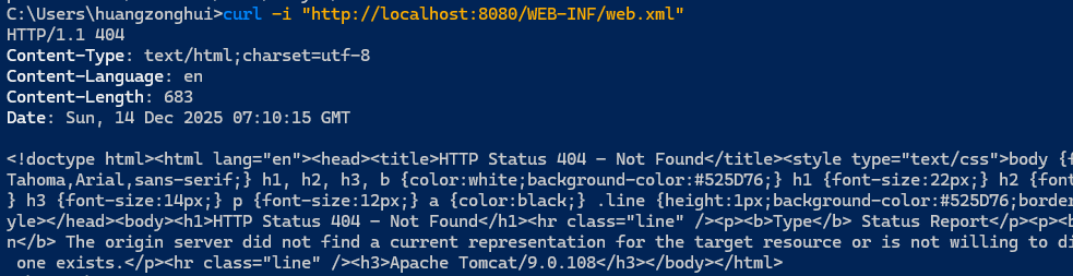 curl -i "http://localhost:8080/WEB-INF/web.xml"