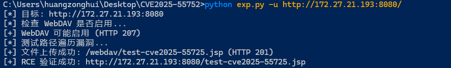 print("\n[!] 目标可能存在 CVE-2025-55725 漏洞!!!")
